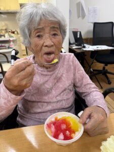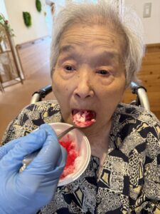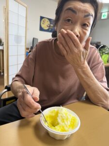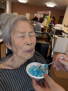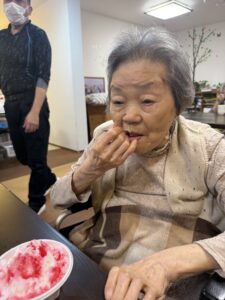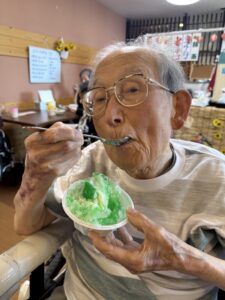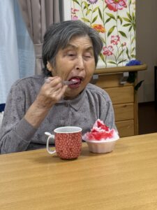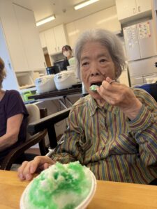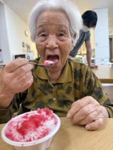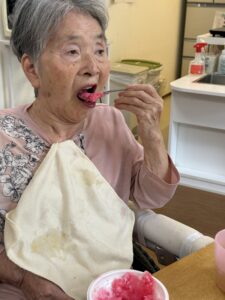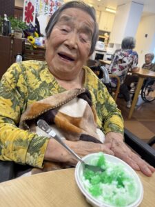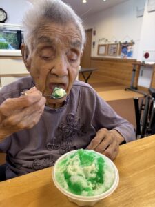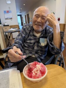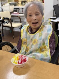 ということで、今年も瑞寿苑名物「移動式かき氷」が各ユニットをまわり、皆さんに冷んやりとするひと時をお配りさせていただきました〜(^ー^)