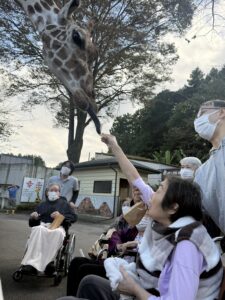 キリンに餌をあげたり、ゾウに餌をあげたりと入居者、御家族、職員、とても楽しい時間を過ごしてきました(*^▽^*)