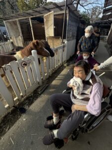 入居者の皆さん、久しぶりのさまざまな動物を前にとても興味津々‼︎