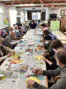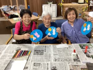 9月の製作活動で「お月見タペストリー」を作りました🎵