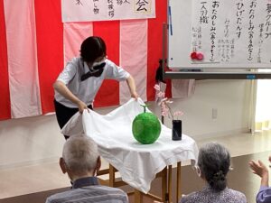 そして・・職員も「カラオケ」「夢グループのものまね」「人間間違い探し」「紙芝居」「ひげダンス」「2人羽織り」などの、身体を張った?芸を披露しました( *´艸`)