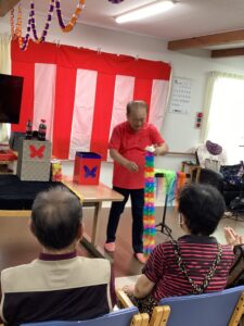 シルバー大学OBのボランティアさんをお招きし、オカリナ・ハーモニカ・ギター演奏や歌やマジックショーを披露していただきました♬