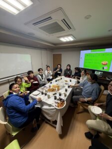 先輩職員3名からのメッセージをいただいたり、また今年も外国の方の入職があったので、母国のおやつを作っていただき、日本のお菓子と一緒に食べながら、わいわい交流を図りました♪
