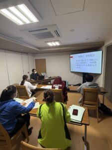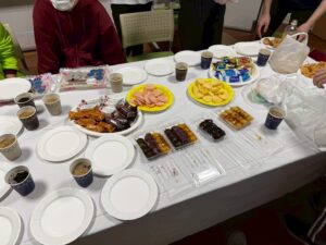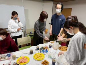 先輩職員3名からのメッセージをいただいたり、また今年も外国の方の入職があったので、母国のおやつを作っていただき、日本のお菓子と一緒に食べながら、わいわい交流を図りました♪